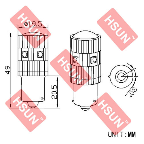 ProductsHome->Products ->Auto LED Lamp ->BAU15S(PY21W)7507 LED Lamp->HSUN-BAU15S 25W High Power LED Spotlight (5*5W CREE Chips)